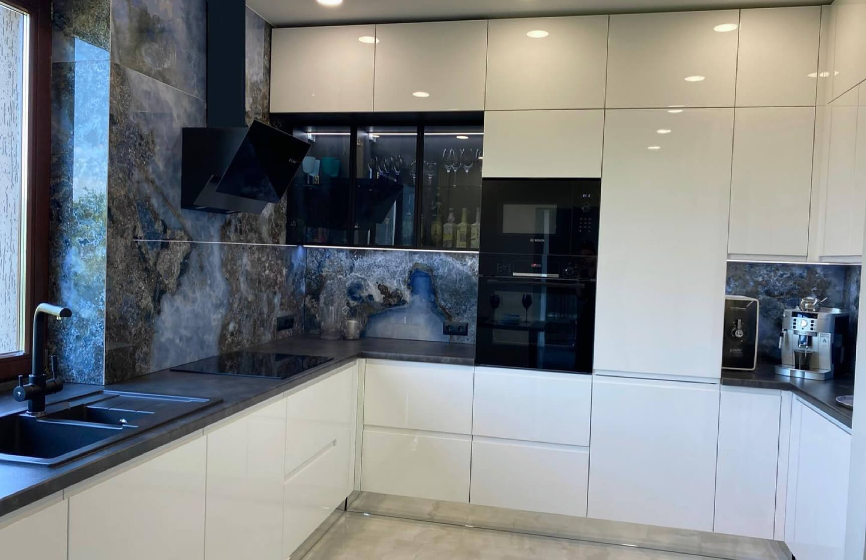 Визуальное расширение. Глянцевые и стеклянные поверхности отражают свет, что критически важно для небольших кухонь.