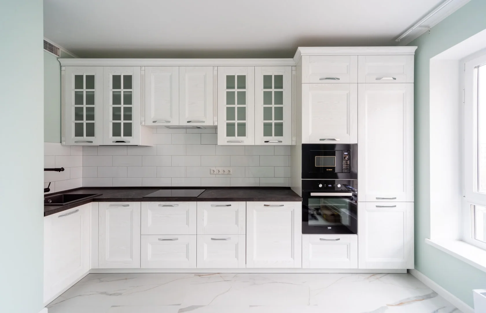 Кухня в стиле Кантри в белом цвете – это идеальное сочетание элегантности, уюта и функциональности. Фасады из МДФ эмали сборного типа обеспечивают прочность и долговечность, а двухстороннее покрытие придает им изысканный вид.