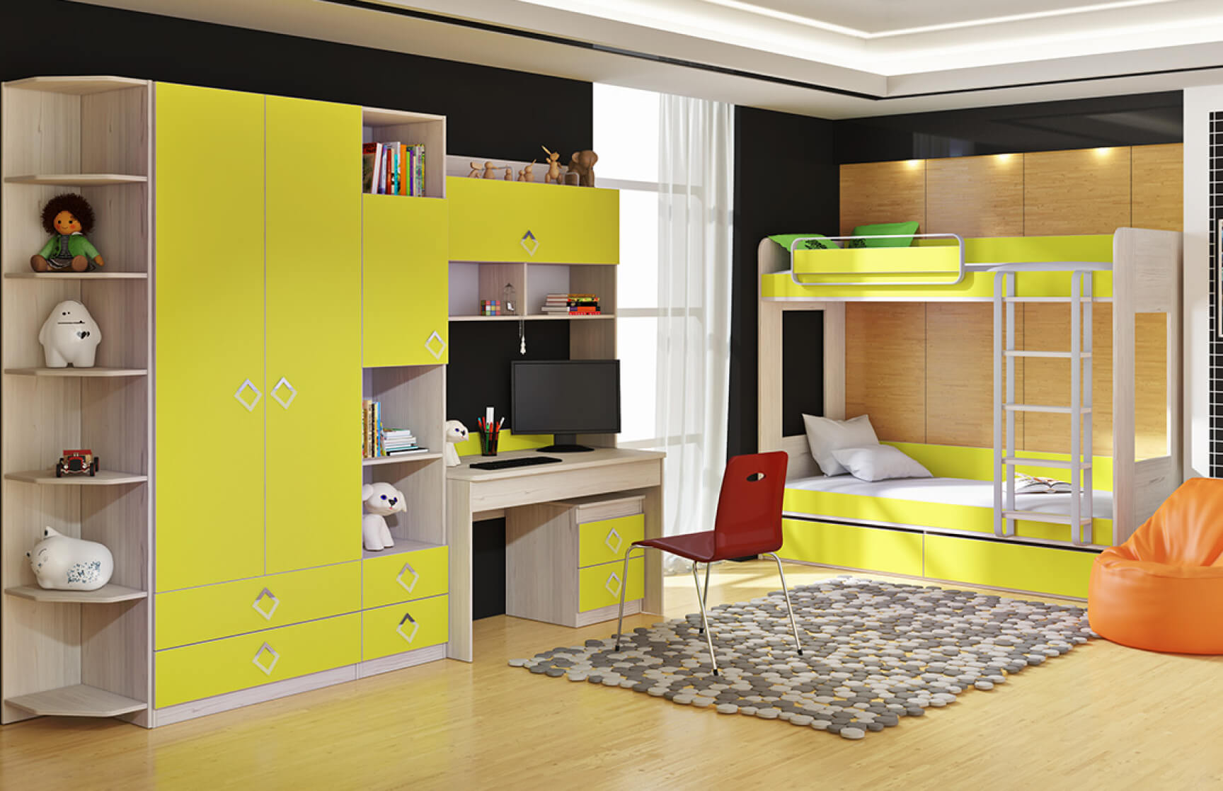 Учет возраста и увлечений. Мебель может "расти" вместе с ребенком, а дизайн — отражать его любимые занятия: от космоса до футбола или балета.